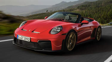 Technically, Porsche has offered a drop-top model with a GT3 engine before, but the former 911 Speedster was a limited-run special that came with a manually operated folding roof and chopped-down windscreen. The new S/C, however, has a more practical powered folding arrangement and standard-height windscreen.